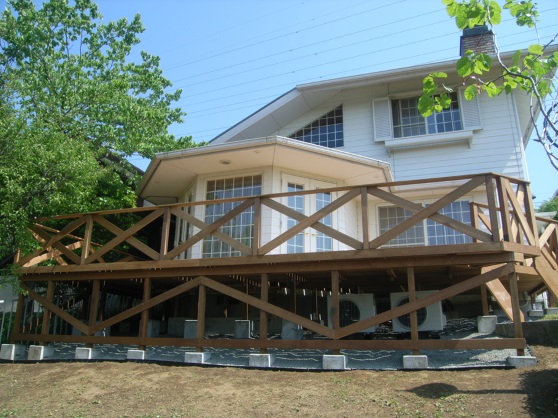 天然木(ウリン材)を使用した味のあるウッドデッキテラス、デッキから見下ろす風景はオーナーさんのこだわりです。